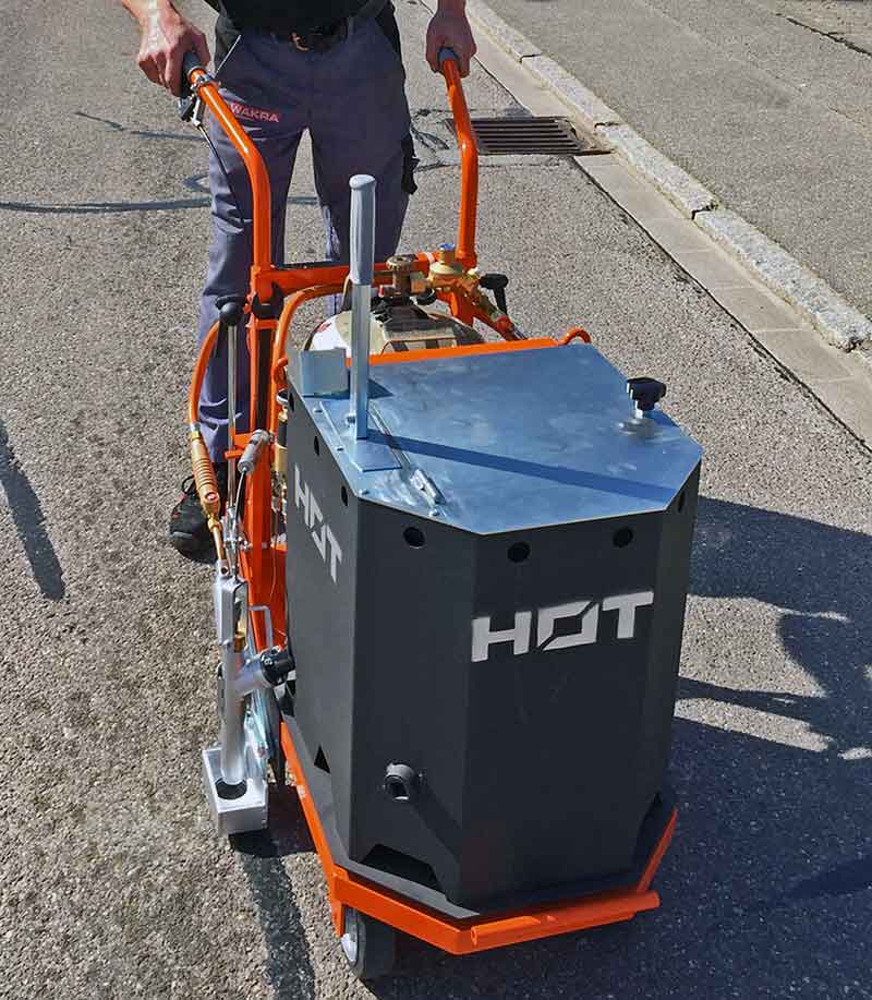 Das Heißvergußgerät DICOREL 3001 wurde speziell zum Vergießen von Fugen oder Rissen gebaut. Die zentral positionierte, fein dosierbare Ausgußdüse und die hohe Beweglichkeit des Gerätes, erlauben ein exaktes Nachfahren an der Fuge oder am Riss.